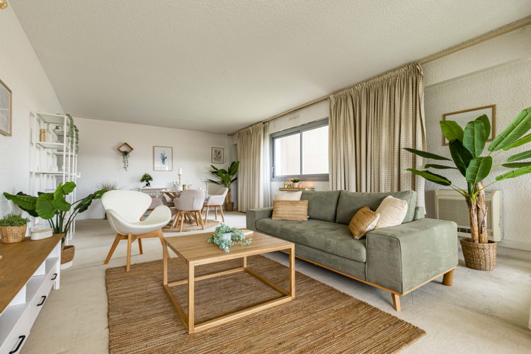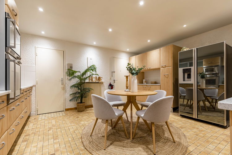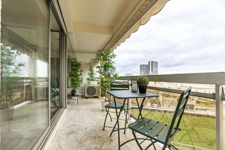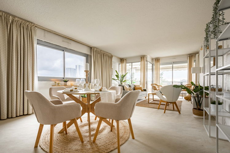 Ce grand T4 est très séduisant: un salon séjour de 40m2 climatisé, ouvrant sur une terrasse avec coin repas (6 personnes) et un store banne, 3 belles chambres dont l’une avec balcon privatif (13, 18, 24m2 chacune), 2 salles d’eau haut de gamme dont l’une avec toilettes, une grande cuisine de 20m2 !