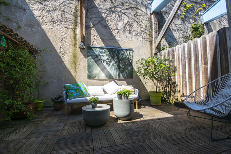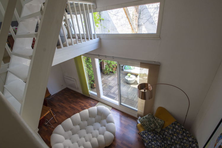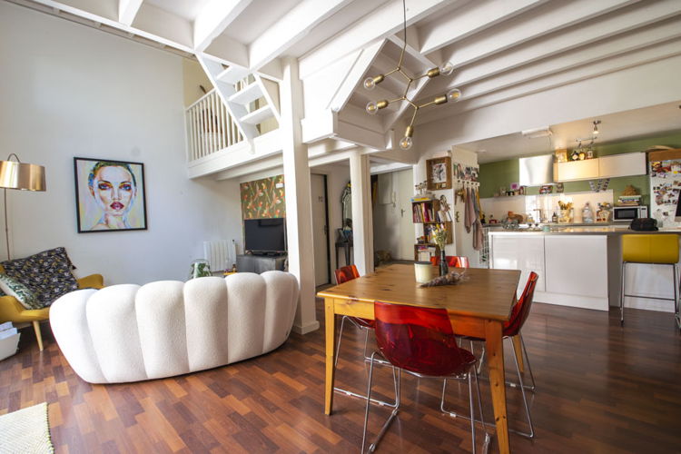 Le volume du salon et sa hauteur sous plafond en font un vrai loft. Sa cuisine équipée et ouverte tournée vers la terrasse donne l’impression de vivre dans une jolie maison de ville.