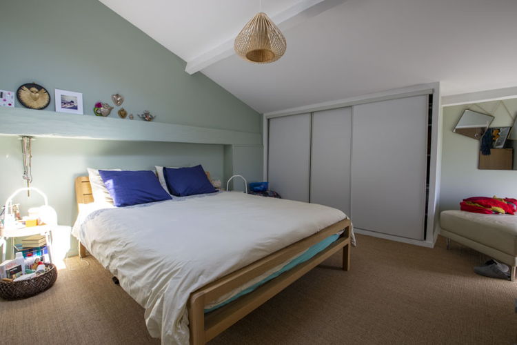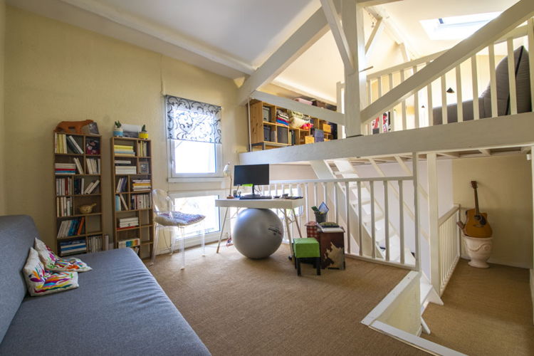 A l’étage, un belle chambre avec des placards, une jolie salle d’eau et 2 espaces bureaux, détente, ou chambre d’enfant, complètent ce duplex de 88m2 (79m2 Loi Carrez).