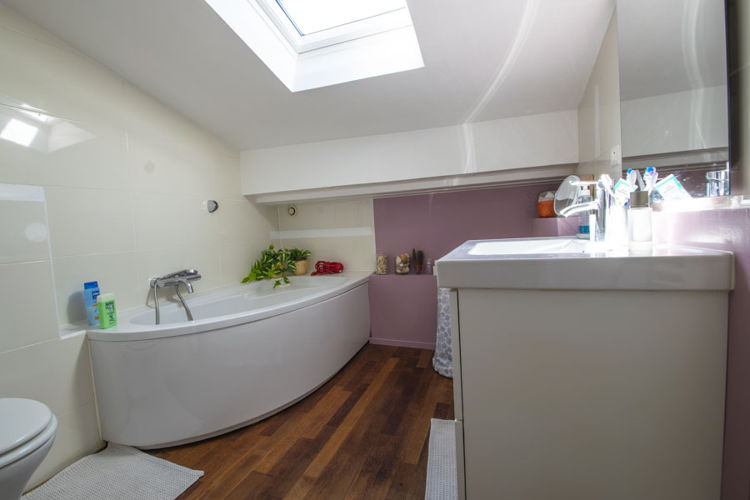 Au 2ème, 2 chambres et un bureau avec Velux, mais avec des hauteurs sous plafond à taille humaine (plus de 1,80m). Une salle de bains avec toilettes complète ce dernier niveau. Climatisation dans les 2 étages.