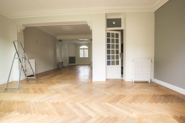 De beaux éléments anciens jalonnent la maison (parquet à bâtons rompus, carreaux de ciment, cheminées, moulures…)