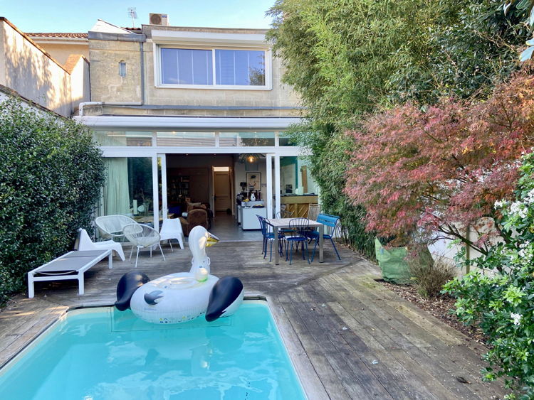 A 2 pas du Parc Bordelais, dans une des plus belles rues du secteur, impossible de ne pas succomber au charme de cette maison bourgeoise et de sa rénovation contemporaine, avec son jardin façon Californie.