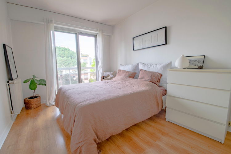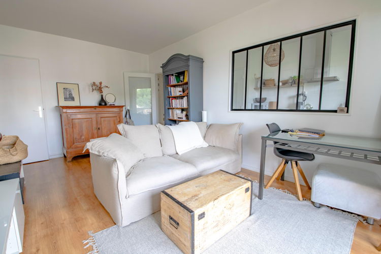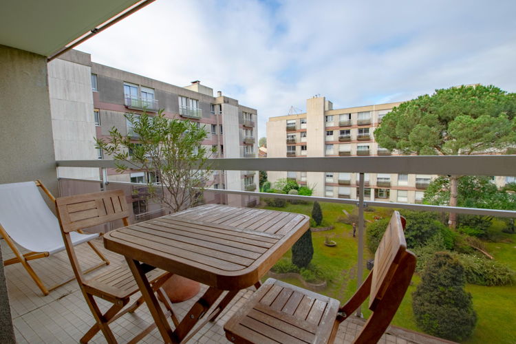 L’appartement donne sur le parc de la résidence, avec de jolis arbres.
