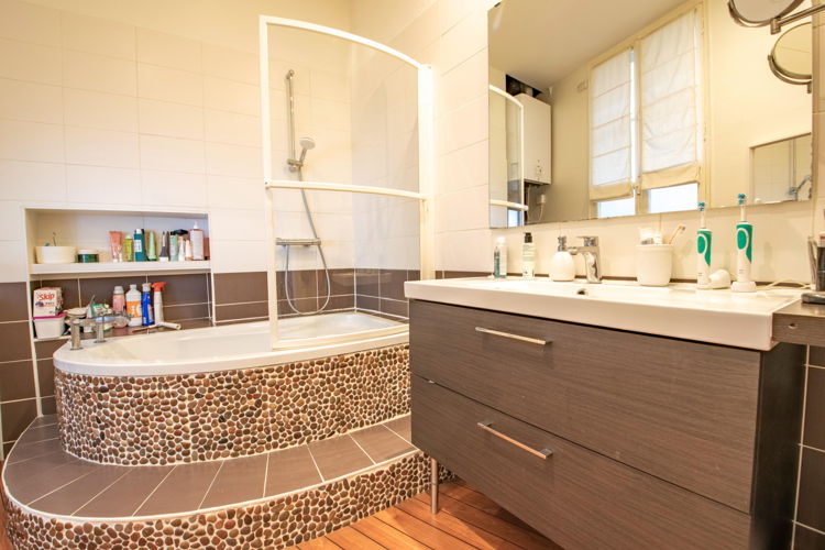 Au sein d’une petite copropriété (5 lots), bien tenue, cet appartement ayant conservé le charme de son époque (parquet, hauteur sous plafond >3m, moulures, cheminées, fenêtres en verre soufflé bouche…) a été rénové de manière élégante et contemporaine.