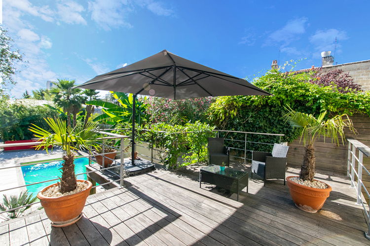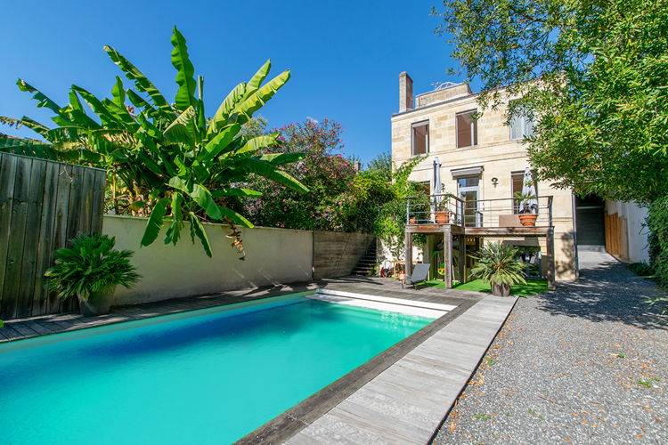 Cette superbe villa aux Chartrons, dans le quartier des négociants, avec piscine, garage 3 voitures, domine un jardin paysagé de plus de 350m2. Les 225m2 de cette maison sont agréablement répartis. Le RDC se compose d’une grande entrée, un salon ouvert sur la terrasse, et une cuisine toute équipée ; le 1er niveau de 2 chambres avec salle de bain, et d’une suite parentale avec dressing et salle d’eau ; le 2ème étage, d’une grande chambre de plus de 20m2, et d’une salle d’eau. Enfin, en RDJ, une grande salle de jeu/home cinéma/chambre d’amis de 30 m2, une buanderie, et une cave aménagée. Jardin plein sud, prestations anciennes conservées (moulures, parquet, cheminée, escalier en pierre, et pierres apparentes). Le garage est situé au fond de la parcelle. Lignes B et C du Tramway et quais à 5 min à pied de la maison.