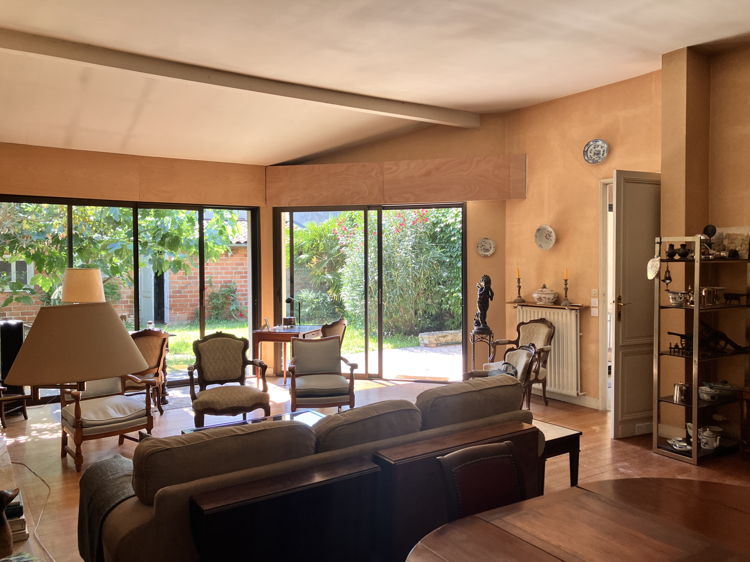 RDC 100m2 : salon 50m² - 3,3m hauteur sous plafond sur tout le RDC, parquet, cheminée et de grandes ouvertures sur le jardin. Grande cuisine dinatoire (refaite il y a 1 an)