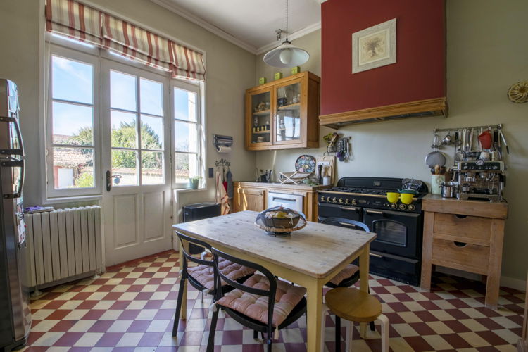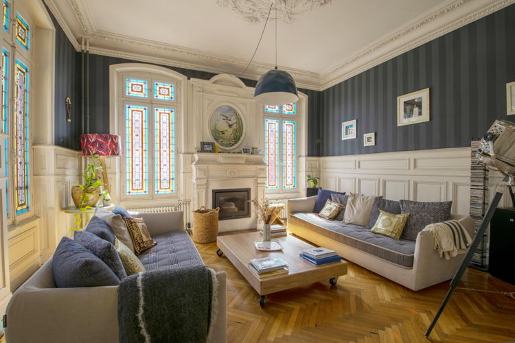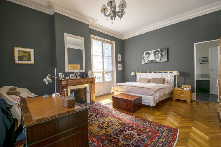 2 salons avec des vitraux d’origine et un poêle, 1 grande salle à manger avec bow-window, une cuisine sur le jardin, 6 chambres, 5 salles d’eau, 5 WC, 1 dressing, 1 bureau, des rangements, 3 balconnets, des hauteurs sous plafonds remarquables, 3 cheminées d’ornement…